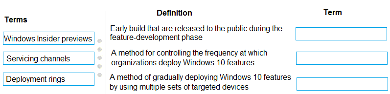 Match each term to its definition. To answer, drag the appropriate terms from the column on the left to its definitions on the right. Each term may be used once, more than once, or not at all.