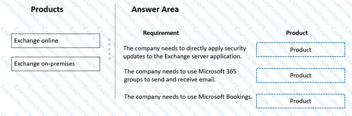 Which product should you select? To answer, drag the appropriate products to the correct requirements. Each product may be used once, more than once, or not at all. You may need to drag the split bar between panes or scroll to view content.