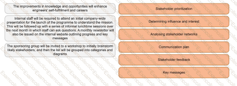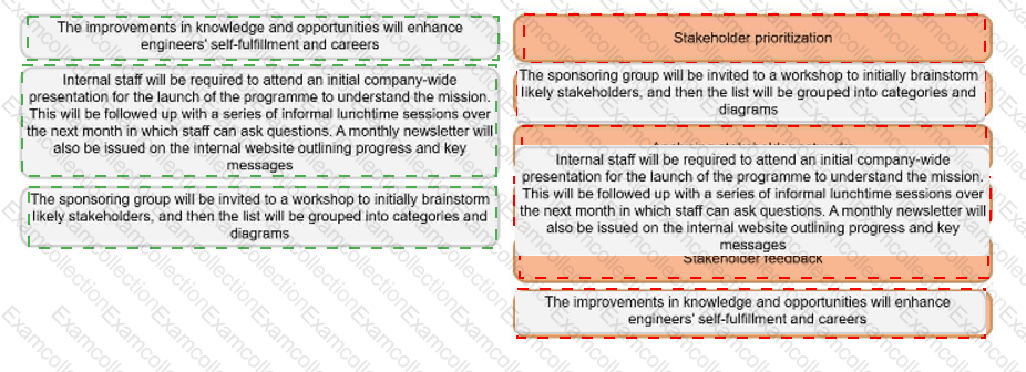 The task of organizational realignment relies heavily on getting results from existing staff and enhancing skills. Here are items of information to be recorded in the stakeholder engagement and communications plan. Under which heading should they be recorded?