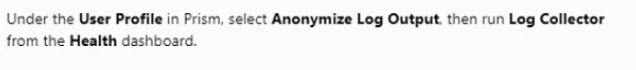 An administrator is working with Nutanix Support and needs to provide logs for troubleshooting an issue. The cluster is located in a secure environment. Data such as IP addresses and VM names cannot be shared.