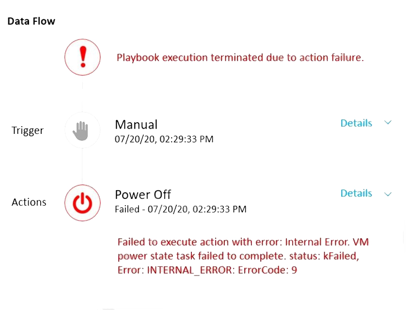A subset of Linux VMs are required to be gracefully shutdown each evening. A Playbook is created to shutdown the targeted VMs, however the error message shown in the exhibit is displayed when the Playbook is executed.