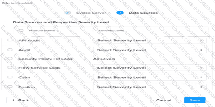 An administrator needs to setup a Syslog server to capture the Flow Network Security Hit logs. Which module name should be selected?