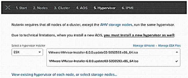 A consultant is installing AOS 5.10 and ESXi 6.5 on three nodes. During the Foundation process, ESXi 6.5 is not available as one of the choices for hypervisor.