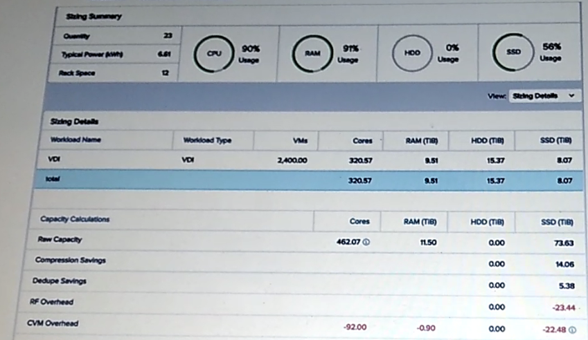 A customer is asking for a quote for a hybrid cluster to run general purpose VMs and an ERP application containing a 500GB database. The customer has a VSAN ReadyNode quote already and looking for a comparable Nutanix solution. They share the following specifications