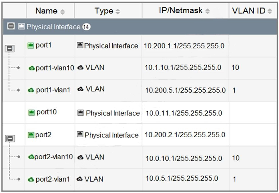 In order for a FortiGate device to act as router on a stick, what configuration must an OT network architect implement on FortiGate to achieve inter-VLAN routing?