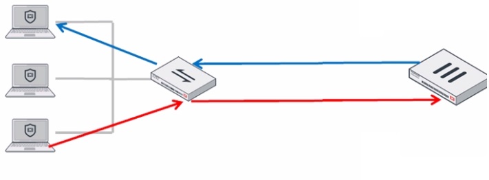PLC-3 and CLIENT can send traffic to PLC-1 and PLC-2. FGT-2 has only one software switch (SSW-1) connecting both PLC-3 and CLIENT. PLC-3 and CLIENT cannot send traffic to each other.