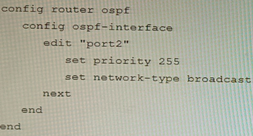 You are operating an internal network with multiple OSPF routers on the same LAN segment. FGT_3 needs to be added to the OSPF network and has the configuration shown in the exhibit. FGT_3 is not establishing any OSPF connection.