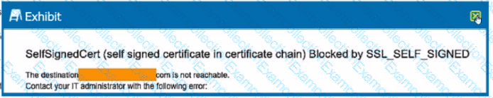 You are the proxy administrator for a medical devices company. You recently changed a pilot group of users from cloud app steering to all Web traffic. Pilot group users have started to report that they receive the error shown in the exhibit when attempting to access the company intranet site that is publicly available. During troubleshooting, you realize that this site uses your company's internal certificate authority for SSL certificates.