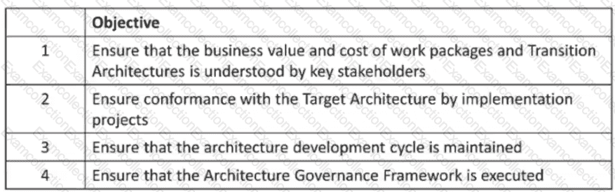 Objective 4: Ensure that the Architecture Governance Framework is executed. This objective is achieved in Phase G: Implementation Governance, where the architecture governance processes and procedures are applied to the implementation projects4.