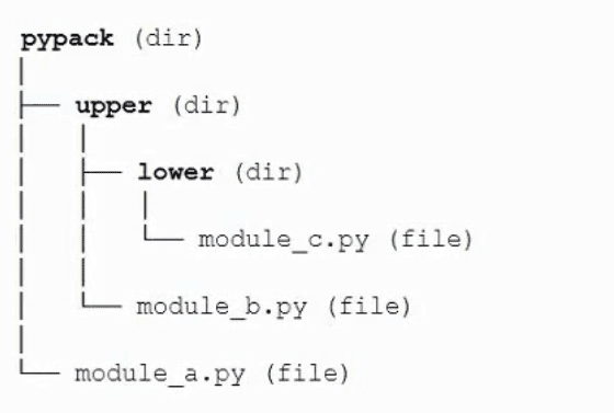 With regards to the directory structure below, select the proper forms of the directives in order to import module_a. (Select two answers)