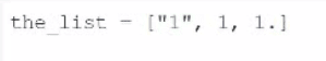 B. 1.1 in the_list |1:3 |: This expression is trying to check if the value 1.1 is present in a sublist of the list. However, this expression is invalid, because it uses a vertical bar instead of a colon to specify the start and end index of the sublist. The sublist is obtained by using the slicing operation, which uses square brackets and a colon to get a part of the list. For example, the_list[1:3] returns [1, 1], which is the sublist of the list from the index 1 to the index 3, excluding the end index. However, the_list |1:3 | will raise a SyntaxError exception and output nothing.