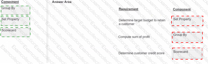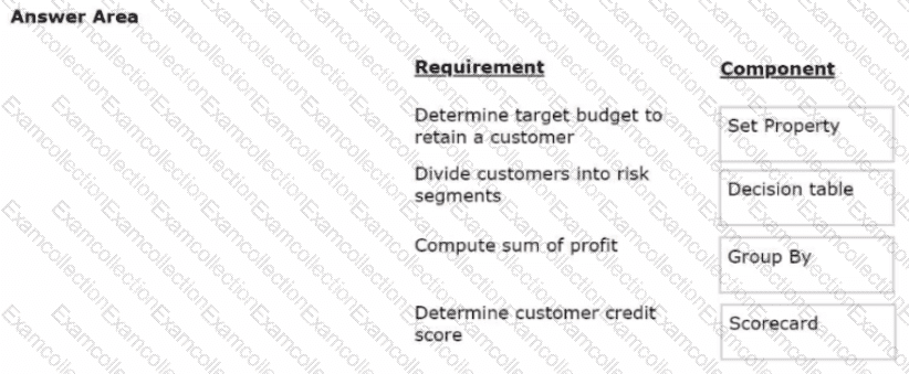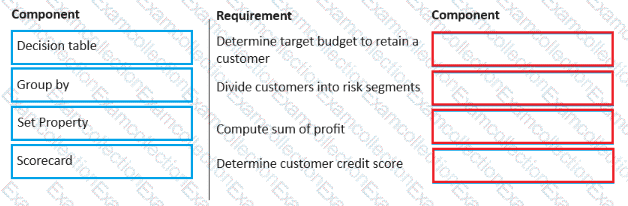 You are a decisioning architect on a next-best-action project and are responsible for designing and implementing decision strategies. Select each component on the leftand drag it to the correct requirement on the right.