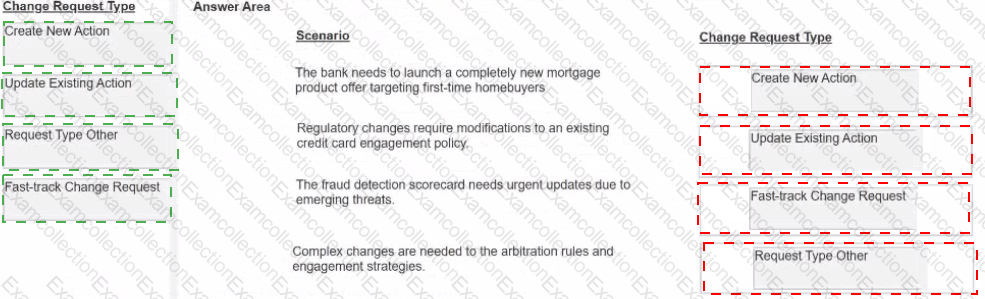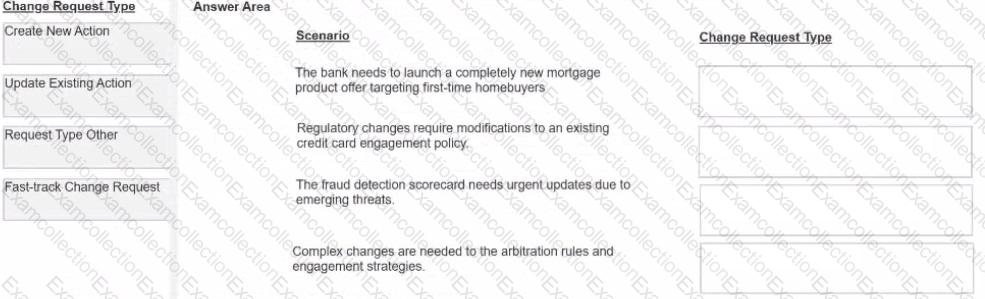 U+ BankT a retail bank, uses Pega Customer Decision Hubâ„¢ to manage various business changes throughout their operations The bank's team members need to understand which change request type to use tor different business scenarios they encounter