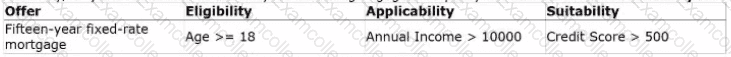 U+- Bank, a retail bank, has recently Implemented a project in which qualified customers see mortgage offers when they log in to the web self-service portal.