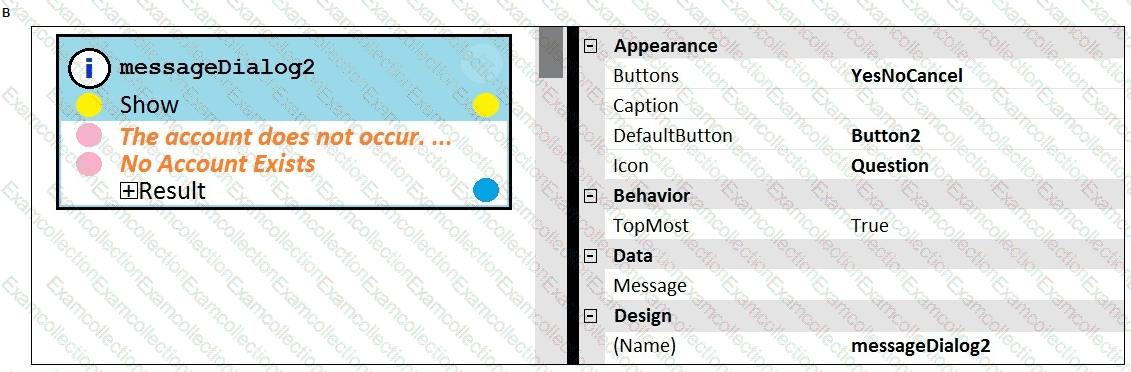 our project for a customer service department contains a Windows form with a btnUpdateAccount button. Users click btnUpdateAccount to automate the updates of other customer account systems at the end of the call. You create the UpdateAccount automation to ensure that the Windows form is still accessible after clicking the button.