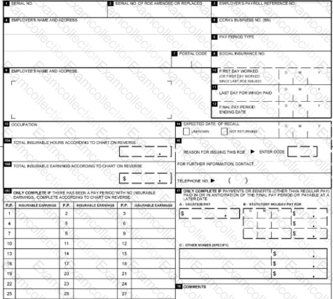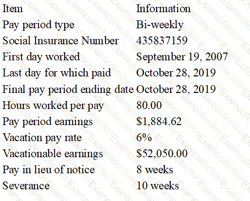 National Hardware, an Ontario organization, will be terminating the employment of Emilie St. Germain on October 28, 2019, the last day of the pay period. Emilie started with National Hardware on September 19, 2007. Complete the paper Record of Employment (ROE) for Emilie based on the information provided in the following chart.