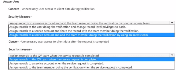 Which security changes should you make? To answer, select the appropriate options in the answer area.