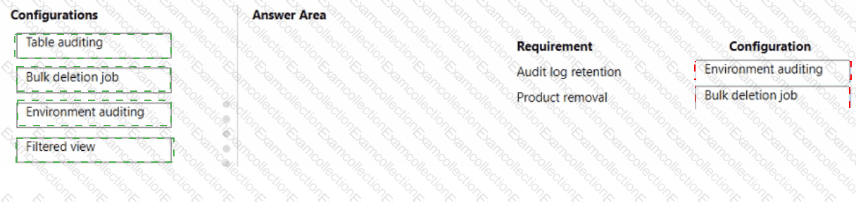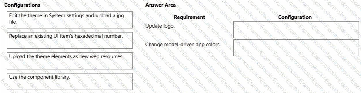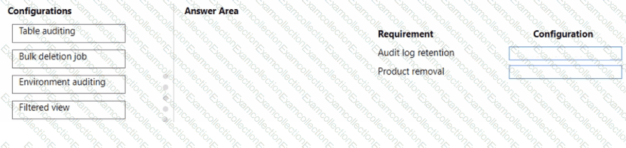 You need to configure the assets. To answer, drag the appropriate configurations to the correct requirements. Each configuration may be used once, more than once, or not at all. You may need to drag the split bar between panes or scroll to view content.