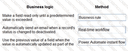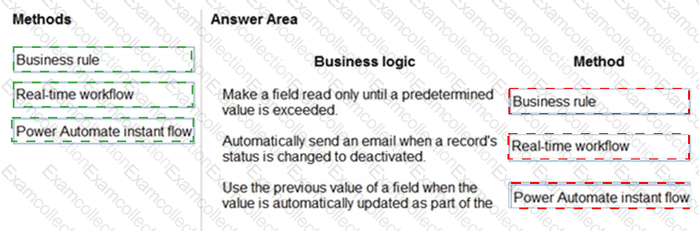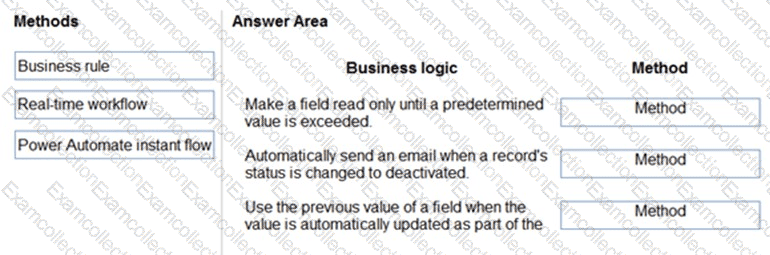Which method should you use? To answer, drag the appropriate methods to the appropriate business logic statements. Each method may be used once, more than once, or not at all. You may need to drag the split bar between panes or scroll to view content.