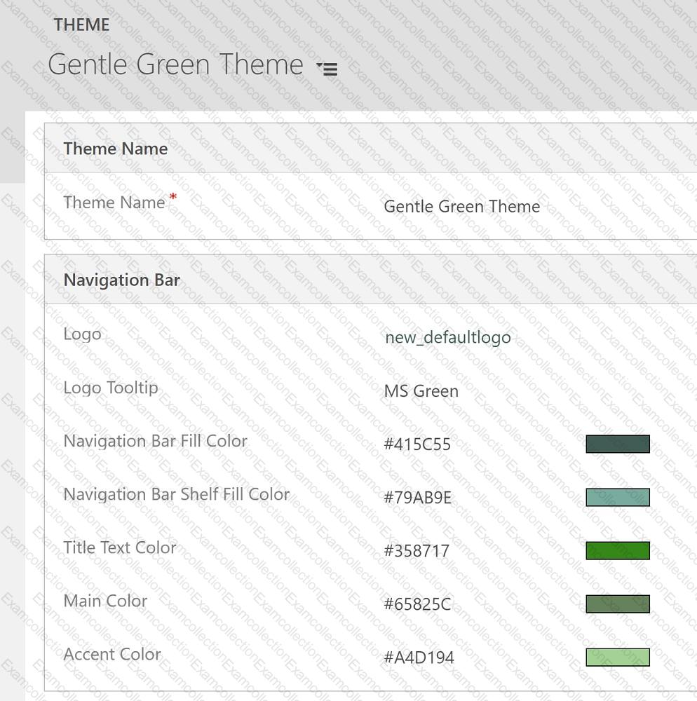You are customizing a model-driven app for a company. You create a Theme template to ensure the company logo and colors are properly used within these apps.