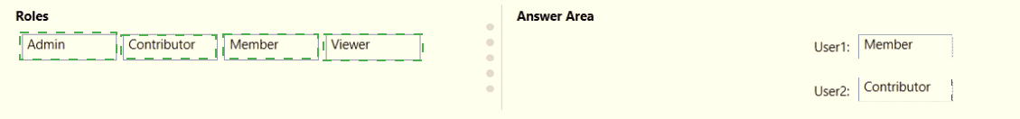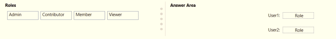 Which user role should you assign to each user? To answer, drag the appropriate roles to the correct users. Each role may be used once, more than once, or not at all. You may need to drag the split bar between panes or scroll to view content.