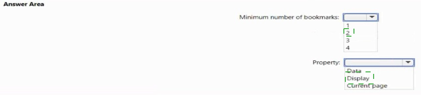 You need to create a Power Bl report. The first page or the report must contain the following two views: