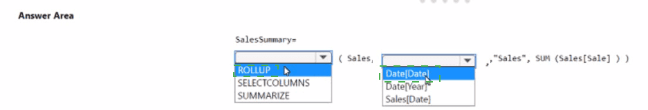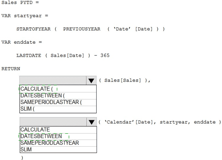 Which DAX functions should you use? To answer, select the appropriate options in the answer area.