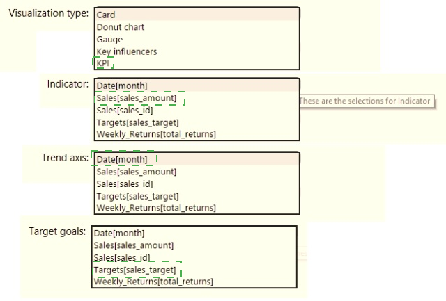 How should you create the visualization? To answer, select the appropriate options in the answer area.