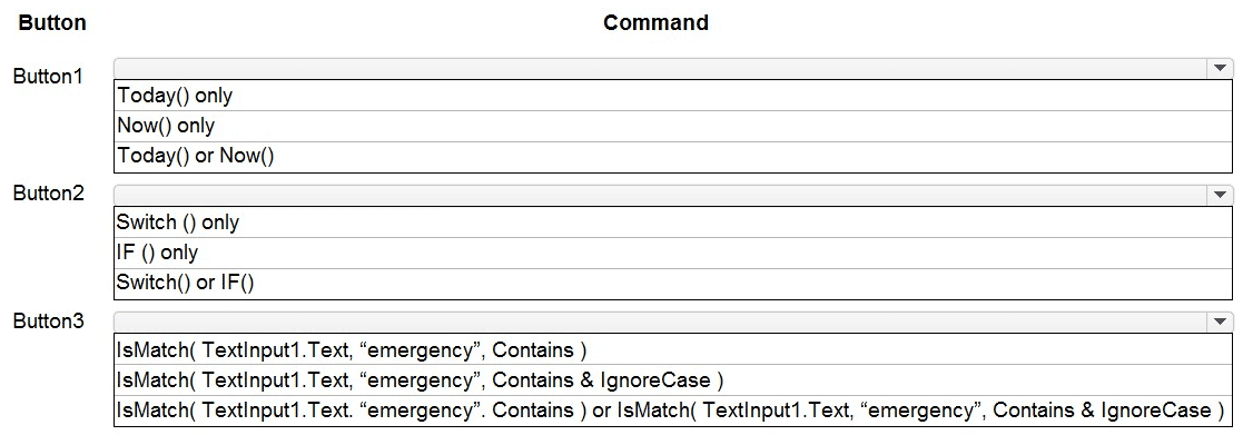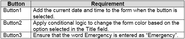 You are developing a Power Platform solution. You plan to add three buttons to a form. The buttons have the following requirements: