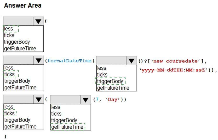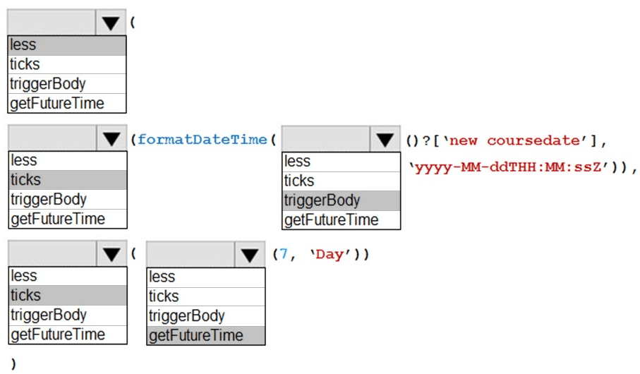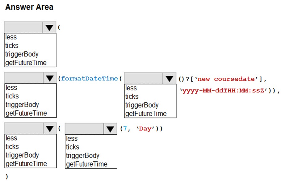 Which functions should you use for the expression? To answer, select the appropriate options in the answer area.