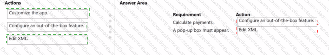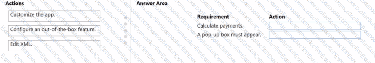 To answer, drag the appropriate actions to the correct requirements. Each action may be used once, more than once, or not at all. You may need to drag the split bar between panes or scroll to view content.