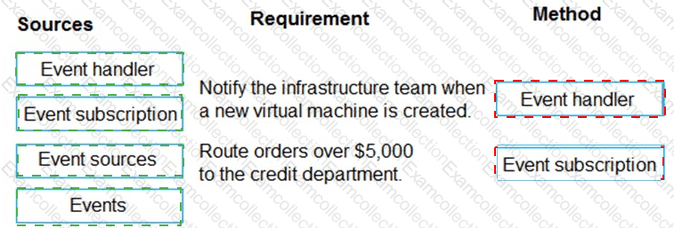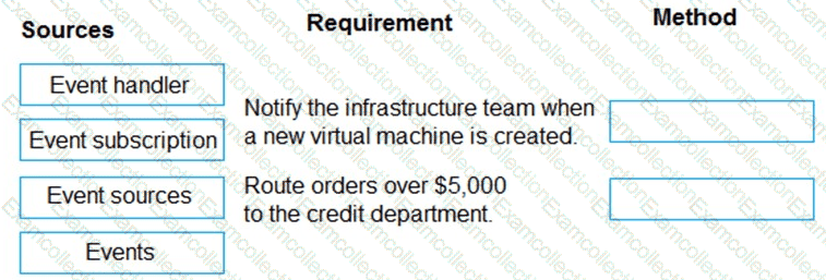 Which method should you use for each requirement? To answer, drag the appropriate methods to the correct requirements. Each method may be used once, more than once, or not at all. You may need to drag the split bar between panes or scroll to view content.