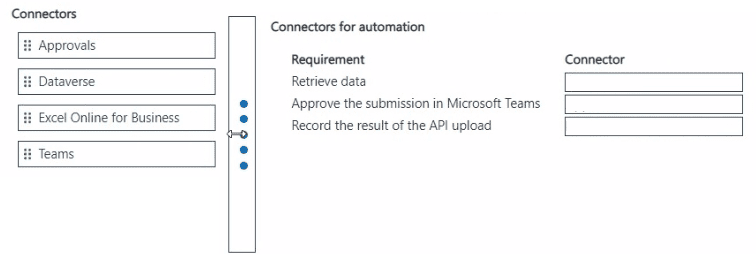 Which connector should you use? To answer, move the appropriate connectors to the correct requirements. You may use each connector once, more than once, or not at all. You may need to move the split bar between panes or scroll to view content.