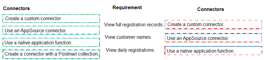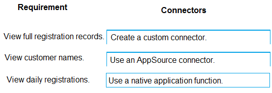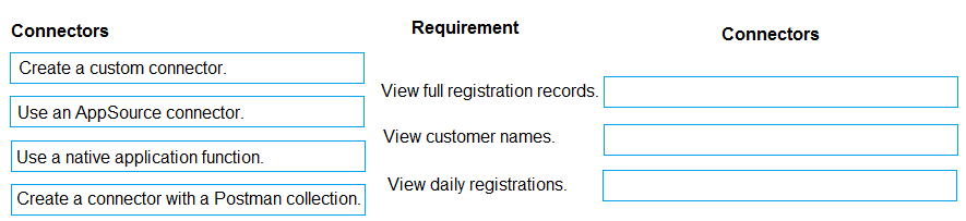 Which types of connectors should you use? To answer, drag the appropriate connectors to the correct requirements. Each connector may be used once, more than once, or not at all. You may need to drag the split bar between panes or scroll to view content.