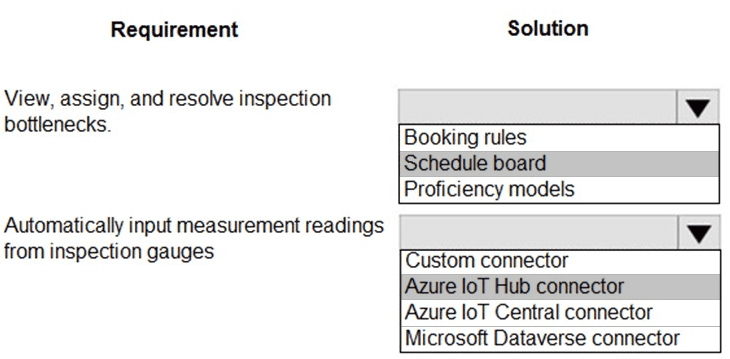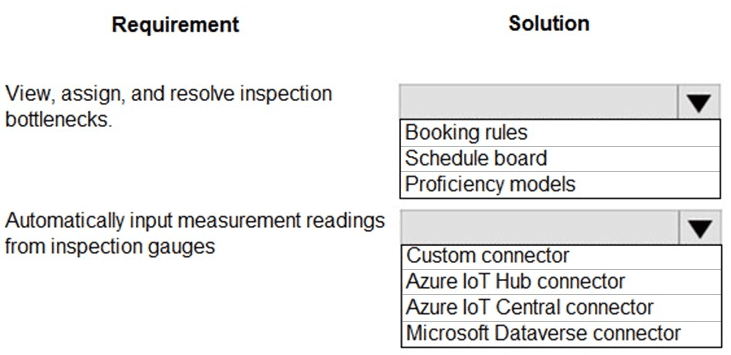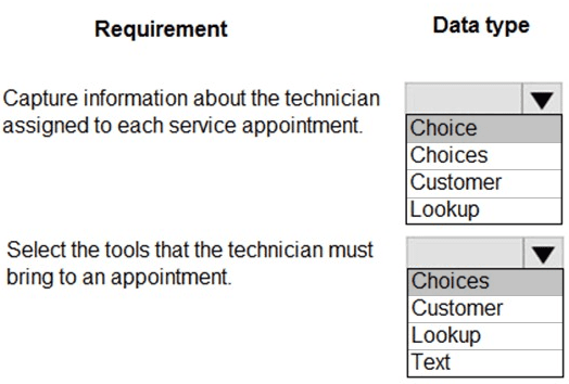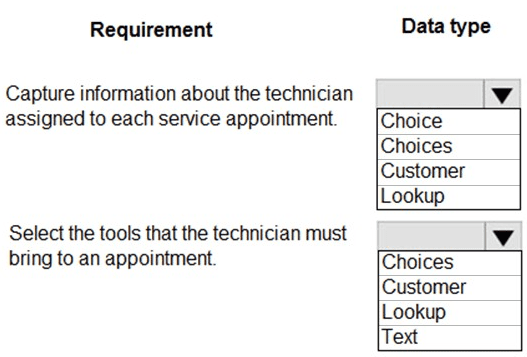 You are designing a Power Platform solution for a company that provides in-home appliance maintenance. When a customer schedules a service appointment, a dispatcher assigns one technician for a specific time and location.