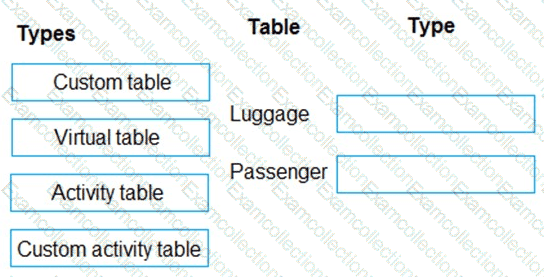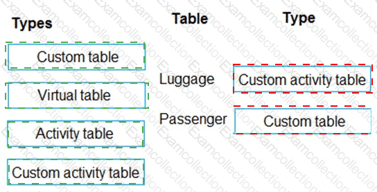 What should you recommend? To answer, drag the appropriate types to the correct tables. Each type may be used once, more than once, or not at all. You may need to drag the split bar between panes or scroll to view content.