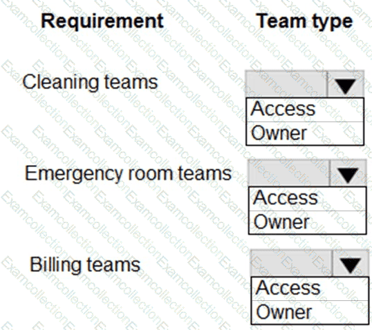 Which team types should you recommend? To answer, select the appropriate options in the answer area.