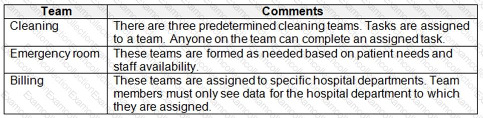 You are designing a model-driven app for a hospital. The app will be used to track teams at the hospital including: