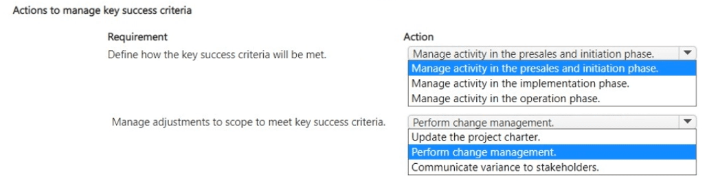 A customer requires information about how to ensure key success criteria will be met at the end of a project.