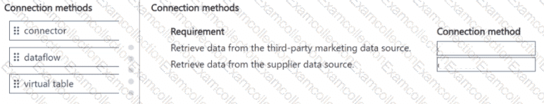 To answer, move the appropriate connection methods to the correct requirements. You may use each connection method once, more than once, or not at all. You may need to move the split bar between panes or scroll to view content.