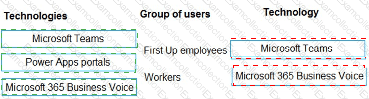What should you recommend? To answer, drag the appropriate technologies to the correct groups of users. Each technology may be used once, more than once, or not at all. You may need to drag the split bar between panes or scroll to view content.