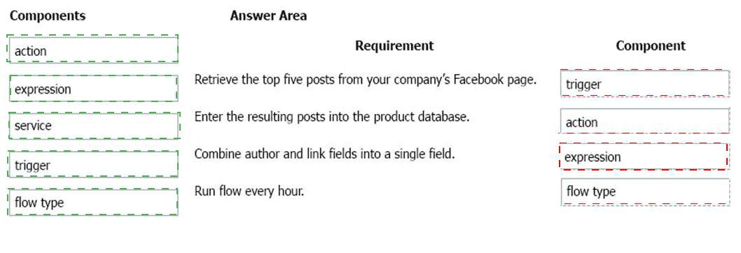 To answer, drag the appropriate components to the correct requirements. Each component may be used once, more than once, or not at all. You may need to drag the split bar between panes or scroll to view content.