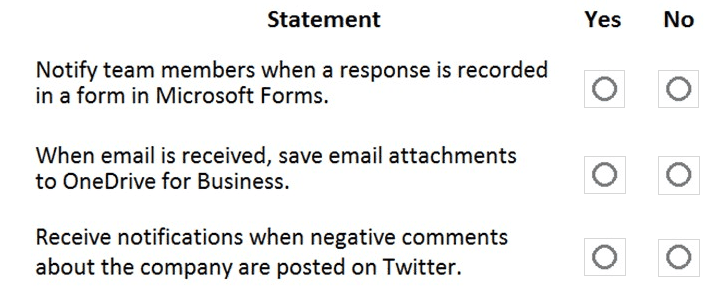 You plan to use Microsoft Flow to monitor what people are saying about your company's products. You store the feedback for research and development purposes.