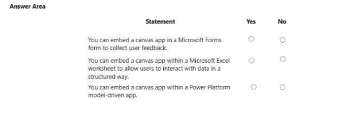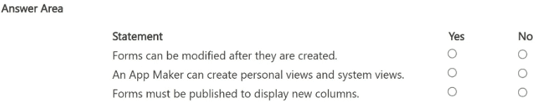For each of the following statements, select Yes if the statement is true. Otherwise, select No.