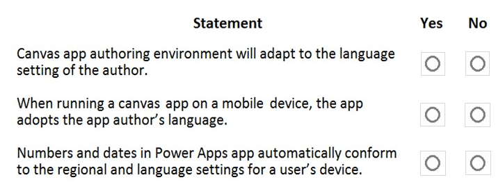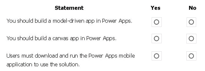 For each of the following statements, select Yes if the statement is true. Otherwise, select No.