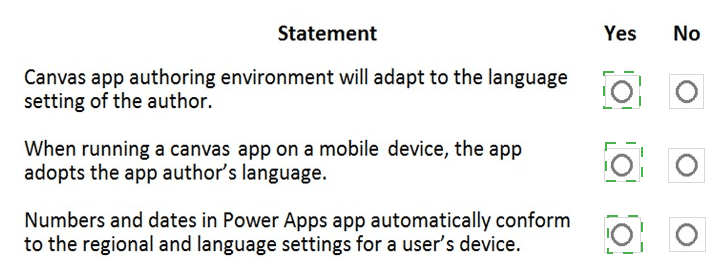 For each of the following statements, select Yes it the statement is true. Otherwise, select No.