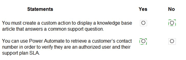 For each of the following statements, select Yes if the statement is true. Otherwise, select No.