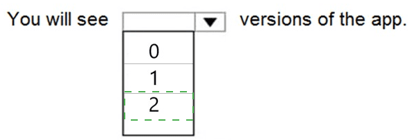 How many versions of the app are displayed in the Version tab for the app? To answer, select the appropriate option in the answer area.