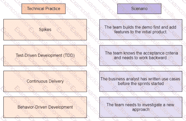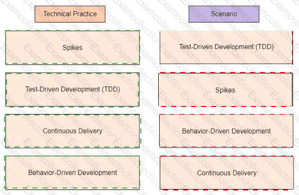 Drag the technical practices on the left to the scenario on the right.