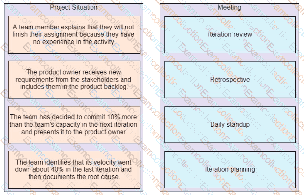 Match the project situation on the left to the meeting on the right where the situation could occur.